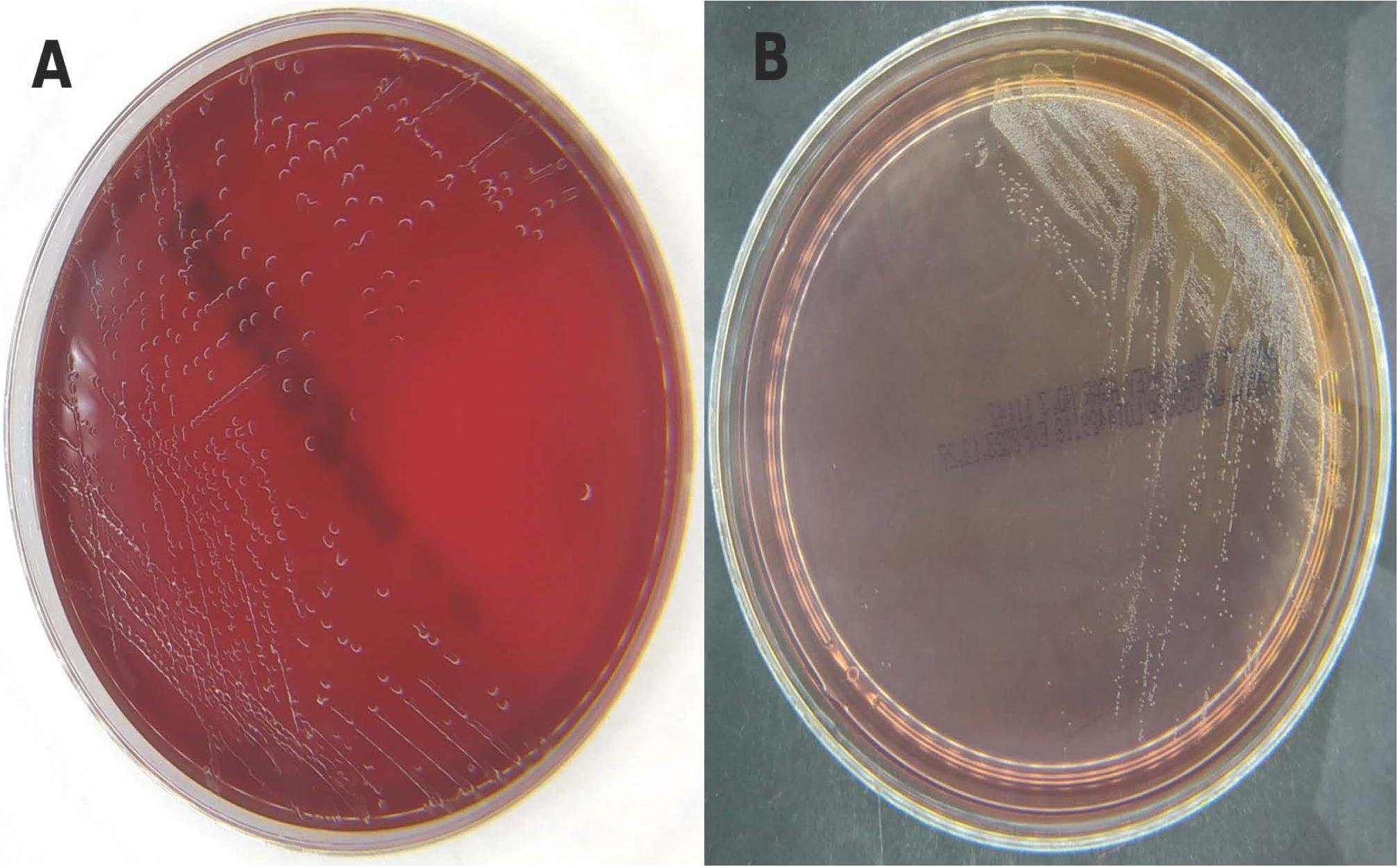 Cultures incubated at 35°C for 18 ± 2 hours yielded medium-sized, non-pigmented, non-hemolytic, shiny (water-like shine) colonies on Colombia agar with 5% horse blood (Oxoid Ltd., Hampshire, United Kingdom) and on chocolate agar (Oxoid Ltd., Hampshire, United Kingdom). Additionally, small colonies with the same appearance formed on MacConkey agar (Oxoid Ltd., Hampshire, United Kingdom).