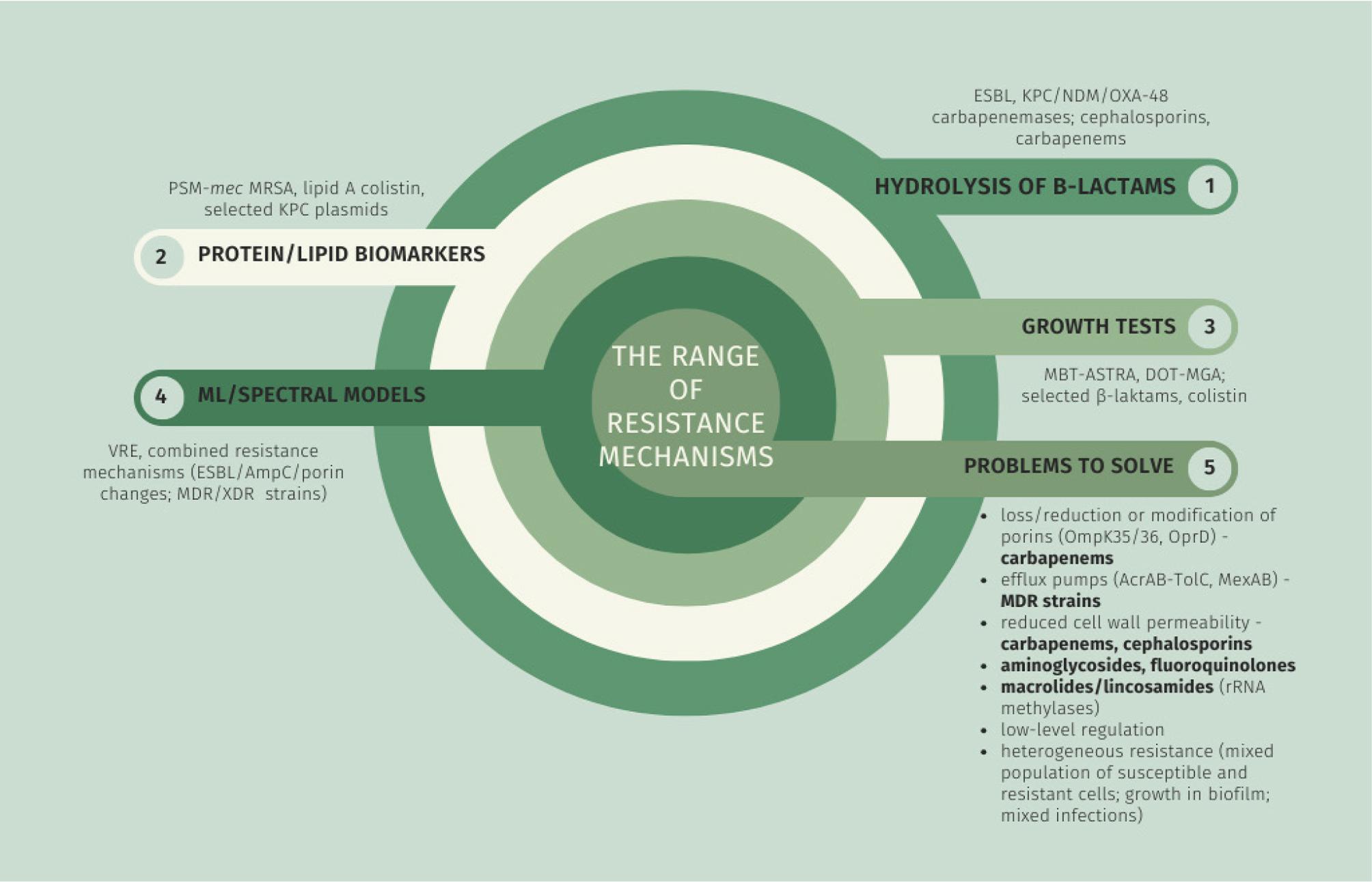 | Methicilin-resistant Staphylococcus aureus (MRSA) | Staphylococcus aureus | Peak at 2415 ± 2 m/z corresponding to phenol-soluble protein toxin (PSM-mec) | PSM-mec can predict carriage of mecA – gene coding penicillin binding protein 2A (PBP2A) responsible for MRSA phenotype | High specificity for PSM-mec correlating with MRSA but the protein isn’t present in every isolate | Specificity for PSM-mec close to 100% | The majority of coagulase-negative staphylococci (CoNS) doesn’t produce PSM-mec thus MALDI-TOF MS has limited usefulness there | (Florio et al. 2020) |