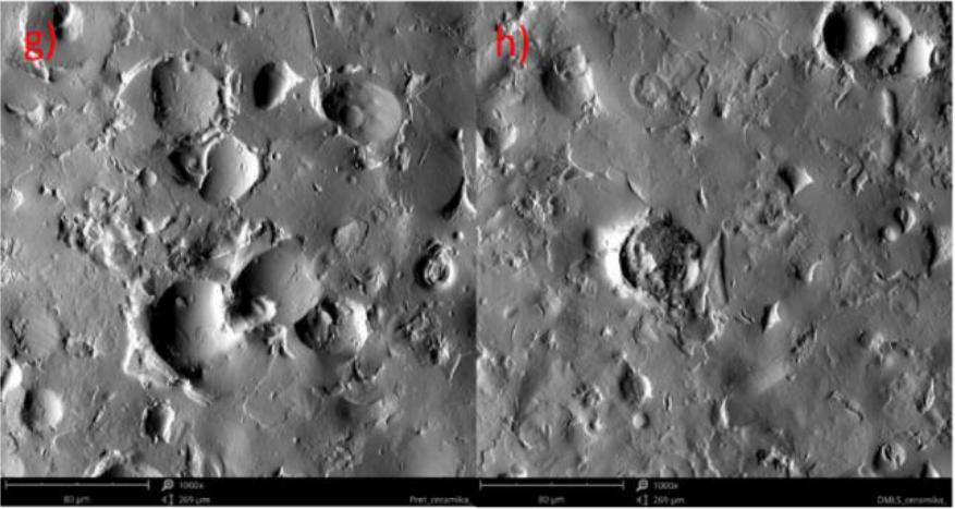 Surface of analysed referenced material showed visible grooves after grinding process (see Fig. 1 a, b). As can be seen in the Fig. 1 and Fig. 2, differences were evident between the groups depending on the pressing medium used. The PHPG and PHDG samples were characterised by visible grooves originating from fragmentation of the medium.