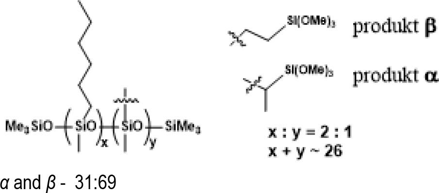 29Si NMR (79,5 MHz, CDCl3): δ (ppm) = -21.24-(-22.64) (SiMe, SiMe3), -41.51-(-41.65) (Si(OMe)3).