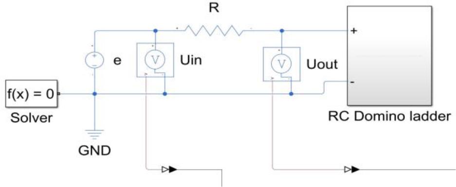 The domino ladder system from Figure 5.1 was recreated in Simulink using values specified in [34] for α = 0.60 with Simscape electrical library as shown in Figure 6.1. That is because such system can effectively be used as a base sample for comparison with models created with considered toolboxes.