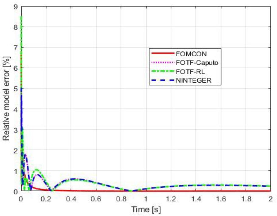 Relative error of the considered fractional-order models