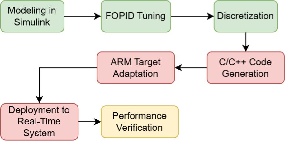 For real-time implementation of fractional-order algorithms, a number of tools can be highlighted. There are MATLAB libraries such as HDL Coder for DAQ boards with FPGA modules or FPGA and ASIC standalone systems and PLC Coder for PLC controllers. Both of those libraries are toolsets to automatically generate code from the simulink graphical interface for a particular target, for example, VHDL/Verilog for FPGAs and ST and Ladder Logic for PLCs, and allow verification of code operation, as well as providing support for external interfaces. However, these libraries support a limited number of hardware platforms, so one must verify compatibility with specific hardware before deciding to use them.