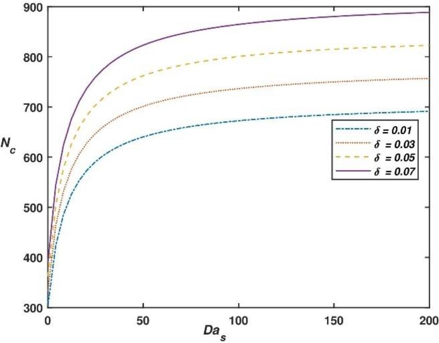Graph between Nc vs δ at χ = 10, Das = 1 and h1 = 3