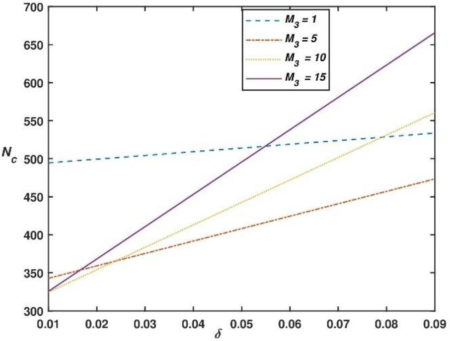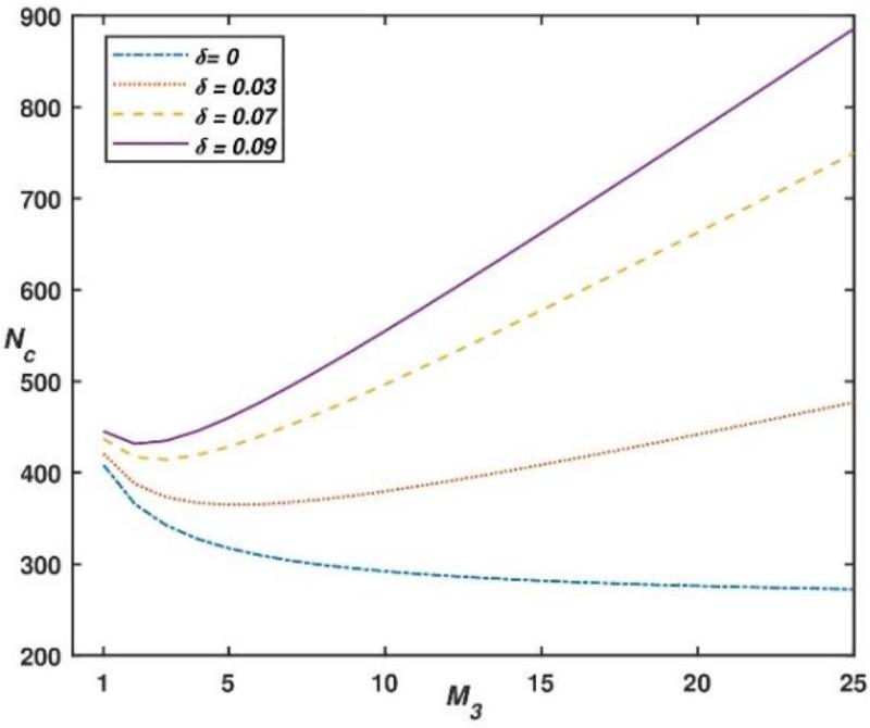 Graph between Nc vs M3 at δ = 0.03, Das = 1 and h1 = 3