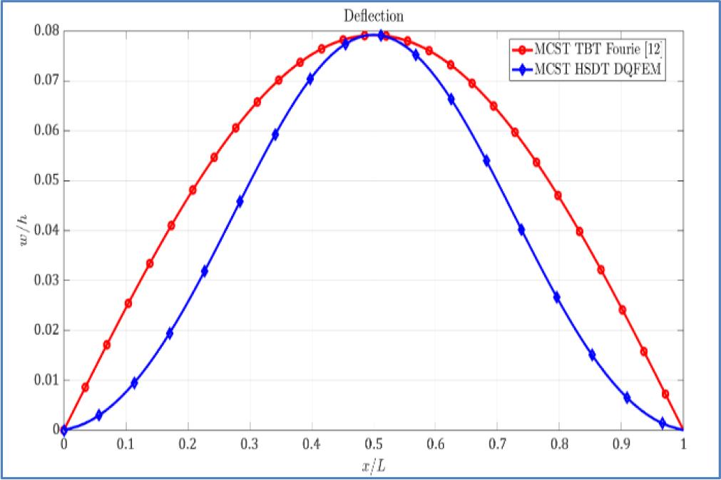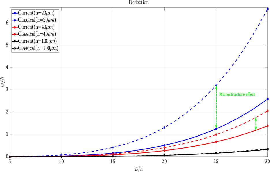 Conversely, the classical model is derived using the same governing equation but with = 0, meaning that it does not consider the microstructural effects introduced by MCST.