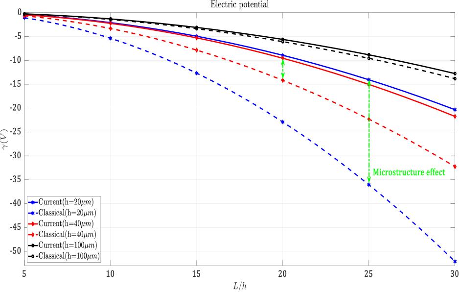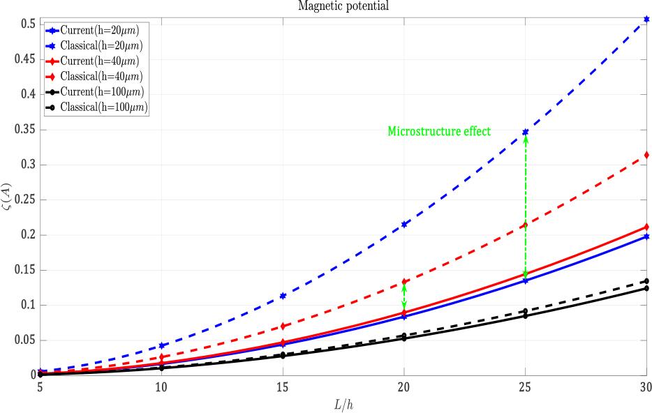 Additionally, it is observed that as the length-to-thickness ratio increases, the microbeam becomes more flexible, leading to a greater deflection. This increase in deflection consequently enhances both the electrical and magnetic potentials.