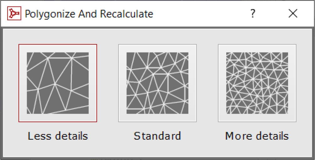 Given the project requirements, it was determined that the digitalisation should provide the most accurate representation of the surface topography. To meet this standard, the More details polygonisation mode was selected.