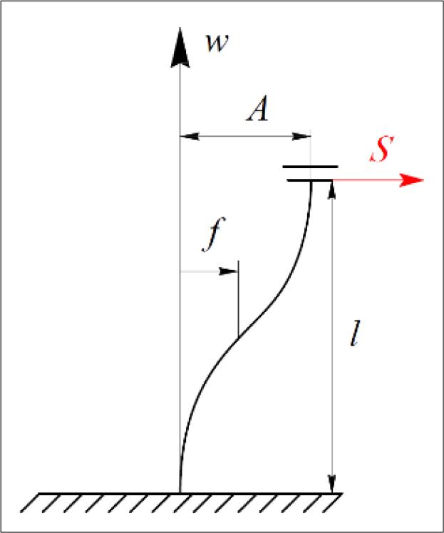 To do so, assuming in line with reality that the first bending frequency of the spring positioned in its outermost points is many times higher than the operating frequency of the machine, to determine the deformation form f of the spring, we can assume that it is caused by the static application of force S in the operating direction – Fig. 8.