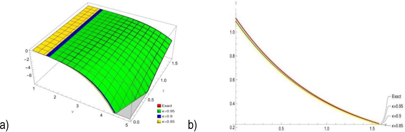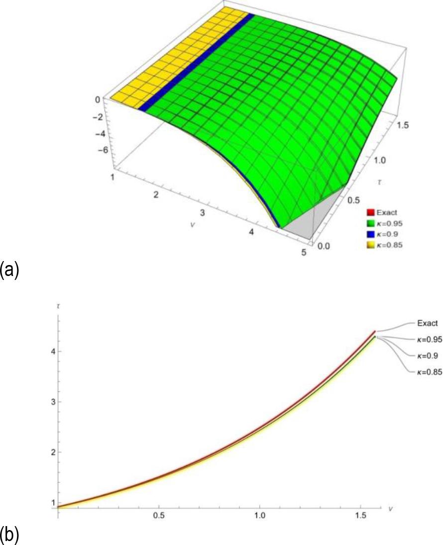 | τ | υ | κ = 0.85 | κ = 0.9 | κ = 0.95 | Exact | Error | |
