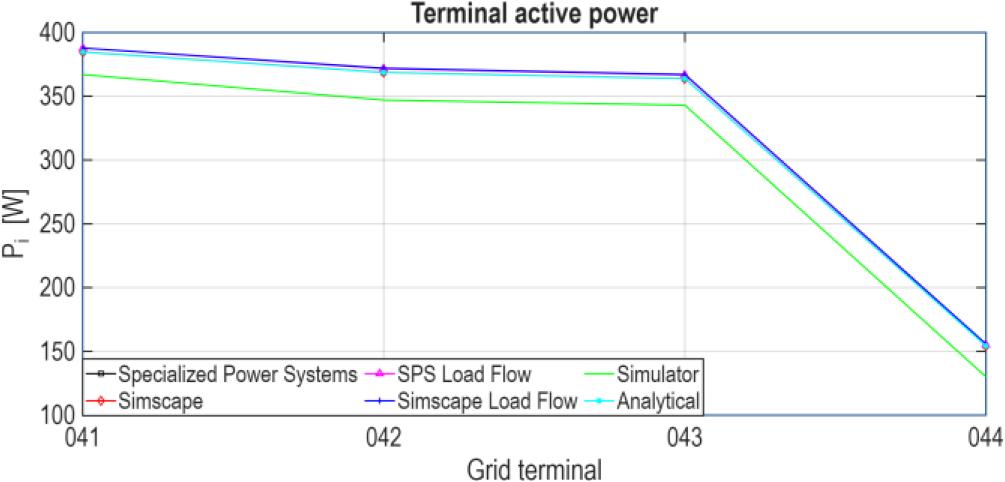 Results between different computer models are similar, yet they in some terms differ comparing to simulator results. In general, active power losses in hardware simulator were greater comparing to values obtained from computer models. In all cases, the biggest losses occur in line L0412, which is the longest and the most loaded within the grid. However, simulator results are different considering lines L0423 and L0434. Active power losses are greater in L0434, whereas in all computer models the losses in L0423 exceed losses in L0434.