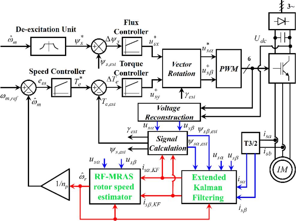 Figure 1 shows the sensorless DTC IM drive using EKF-based MRAS. Input quantities for the DTC drive are computed according to Eqs. (1)–(5):