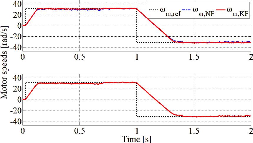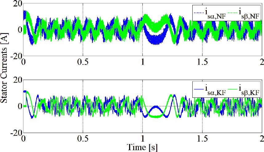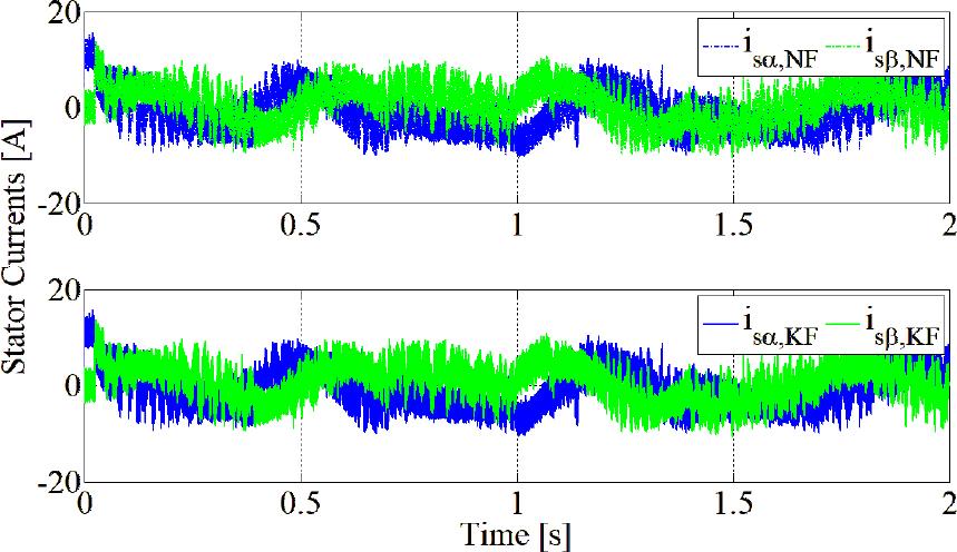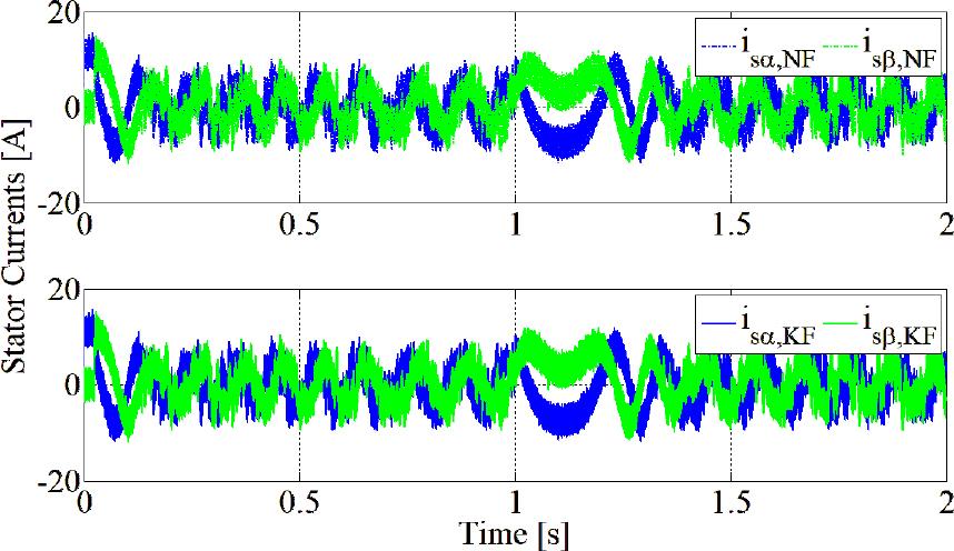 The EKF block estimates state vector XKF that contains currents isα,KF and isβ,KF according to Eqs. (19)–(25):