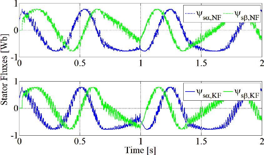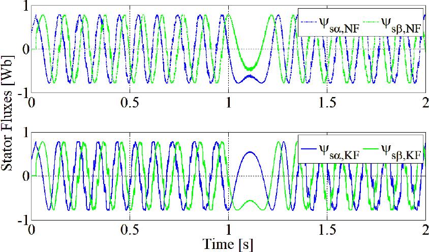Stator fluxes at ωm,ref = 5π/3 rad/s, δp2=0.12, δm2=12