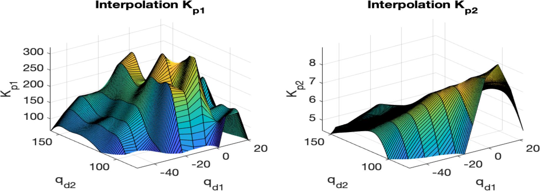 | This work | PD-like with variable gains | Variable; desired position dependent proportional gains with RBF interpolation networks trained offline | Lyapunov theory; global asymptotic stability; gravity compensation required | Simulation; two-DOF direct-drive robot; joint regulation; L2 norm, point-to-point tracking; regulation performance evaluated with parametric uncertainties and external perturbations |