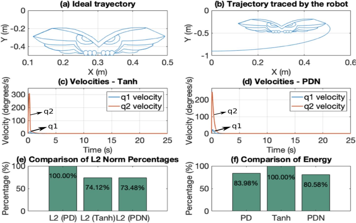 | [19] | Adaptive PD | Adaptive to gravity parameters | Not mentioned; global convergence | Simulation; three-DOF manipulator; point-to-point and tracking |