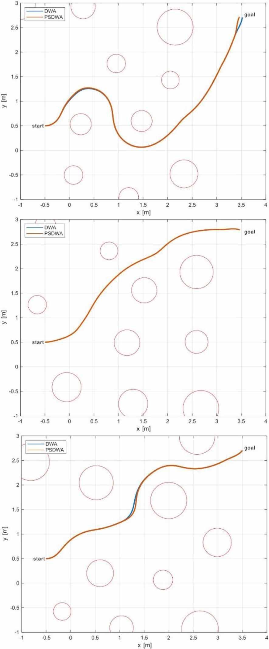 Comparison of quality indicators obtained for DWA and the proposed PSDWA examined in a thousand randomly generated environments with ten obstacles