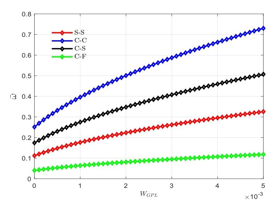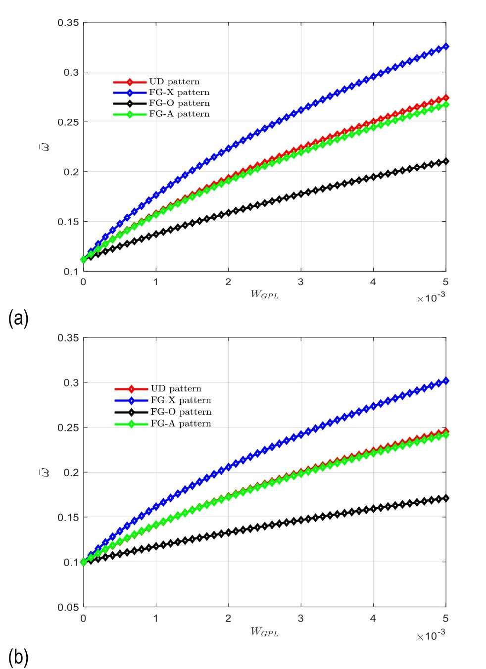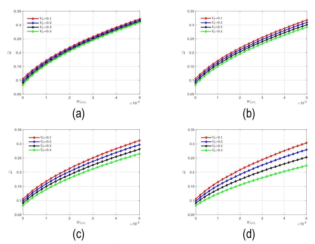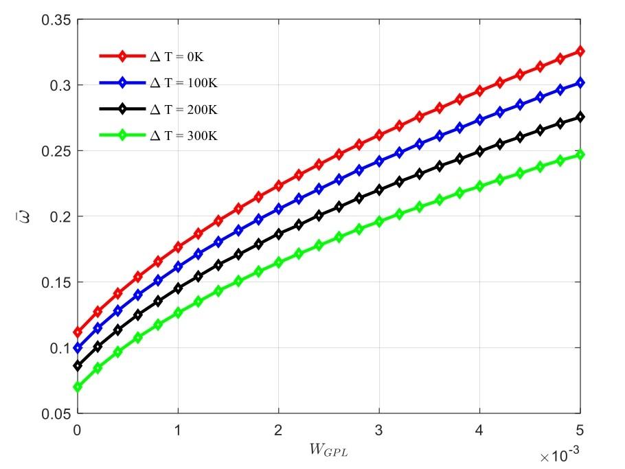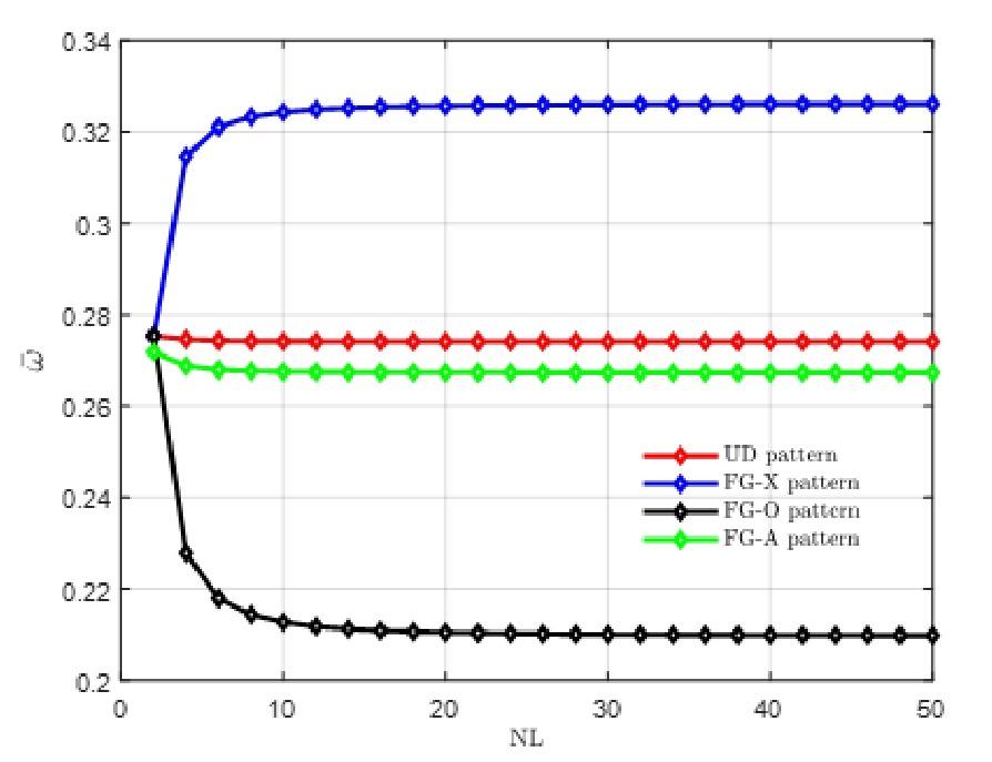 Comparative of non-dimensional frequency with Wu et al_ 7 for various GPL distributions at ∆T = 0 K, L/H = 10, and WGPL=0_3%