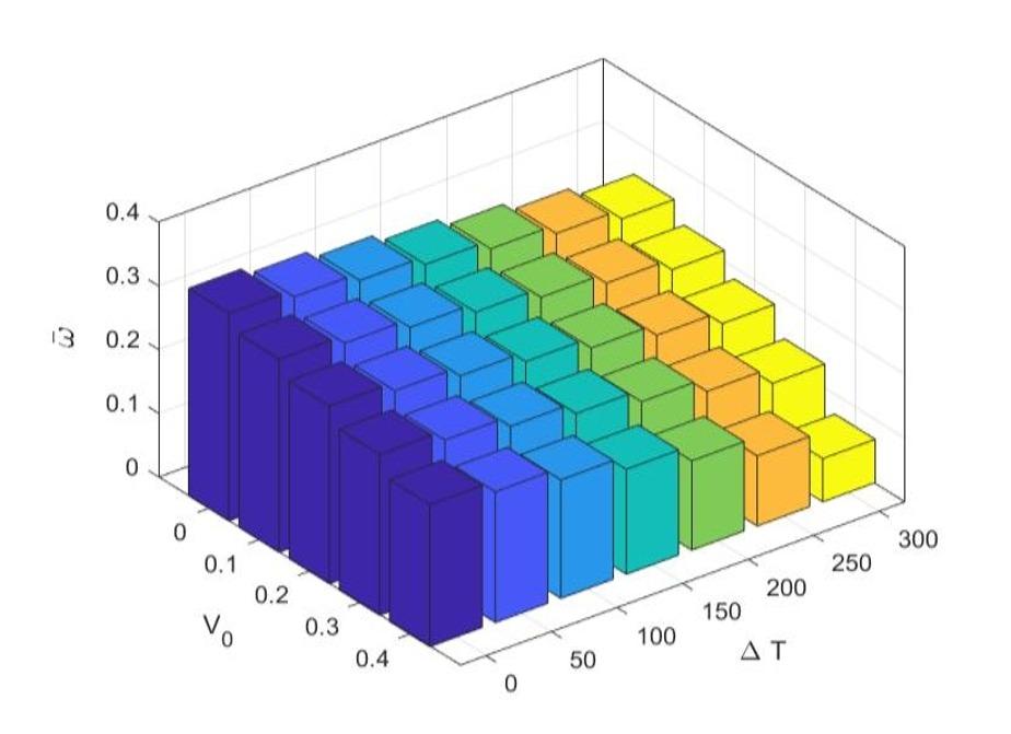 Comparative of the non-dimensional fundamental frequency ω1 for Ps/Pcr=0 between the present results and those of Wu et al_ under different temperature conditions