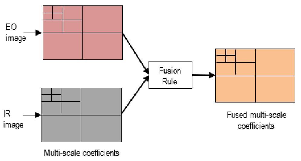 | Simple block replacement [24] | Incredibly easy to understand and apply | The fused image has a random variation of brightness and color information. Fine detail of the image is less |