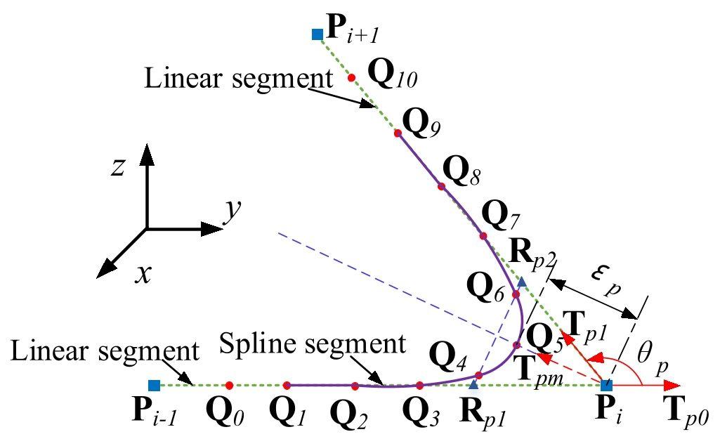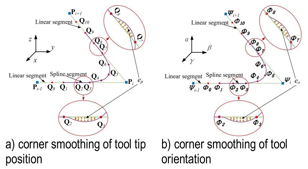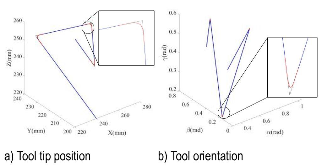 | No. of corners | No. of tool path | Tool tip position (x, y, z)(mm) | Tool orientation(α,β,γ) (rad) |