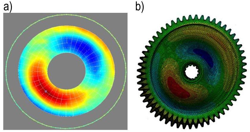 Values of the frequency error εmn [%] (comparison results comes from simplified FE models of GR2_1 wheel)