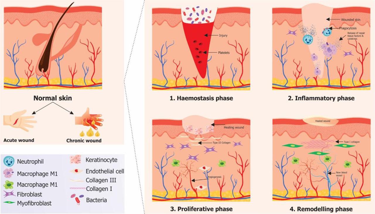 In vitro studies on fish collagens and other components towards skin wound repair
