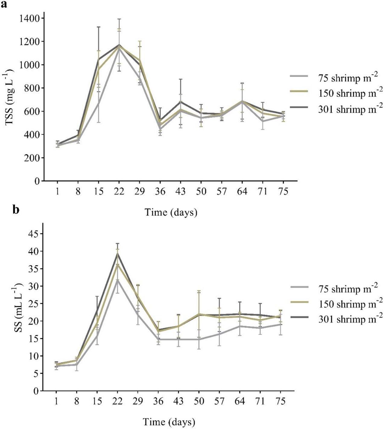 | 75 shrimp m−2 | 150 shrimp m−2 | 301 shrimp m−2 | |