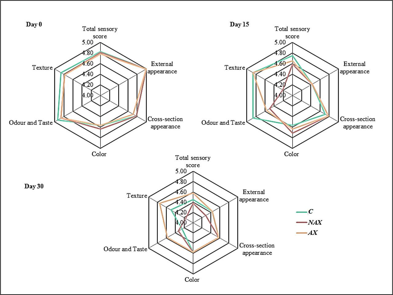 | 30 | 4.57±0.35 Aa | 4.57±0.45 Aa | 4.57±0.45 Aa | ||||
