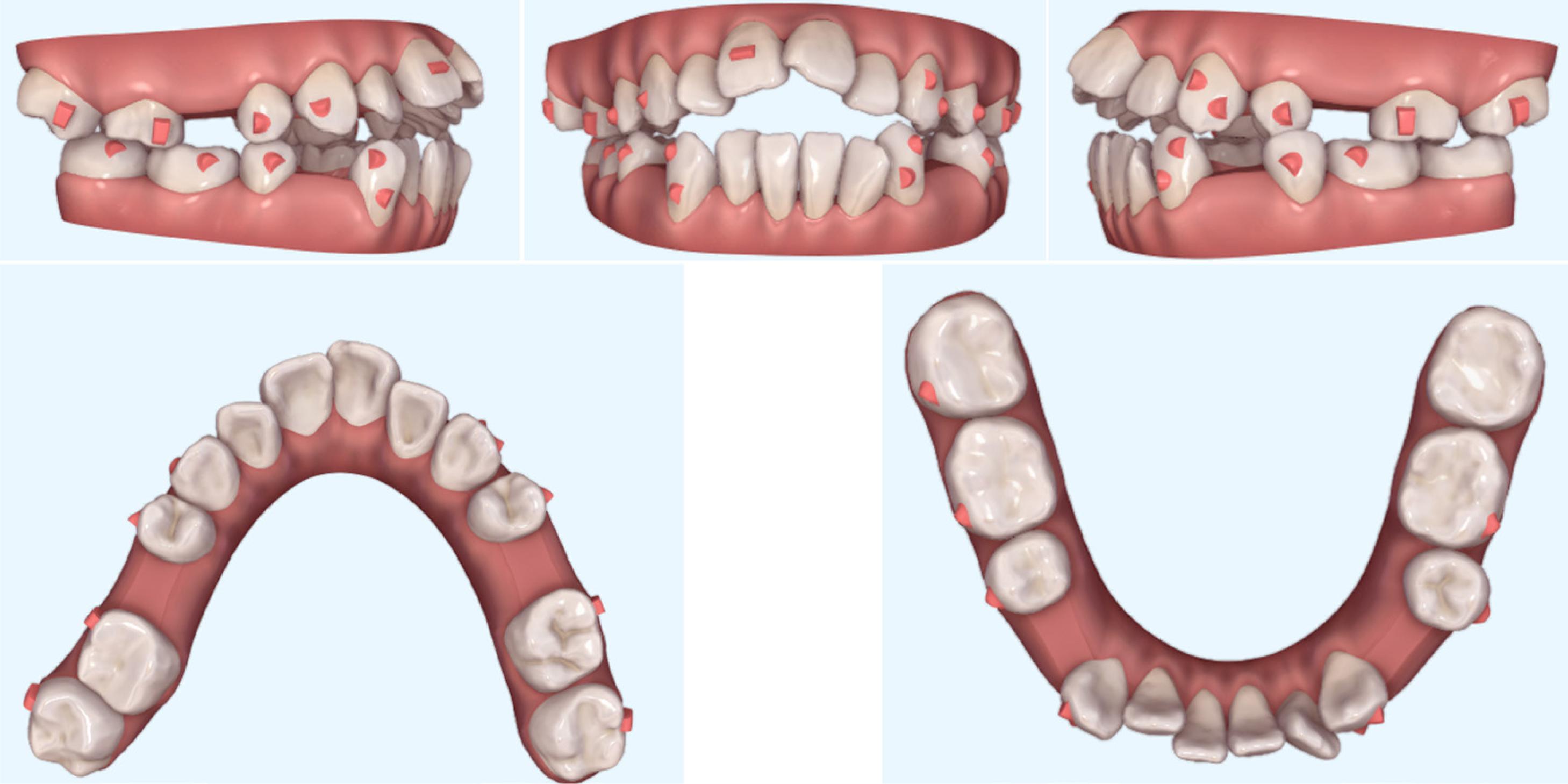 Before treatment, polyvinyl siloxane (DGM, Germany) impressions were taken to develop a ClinCheck treatment plan (Align Technology, Santa Clara, CA, USA). The digital plan was used to determine the number of aligners needed and the treatment duration and to visualise the required biomechanics of tooth movement. The treatment involved three phases: