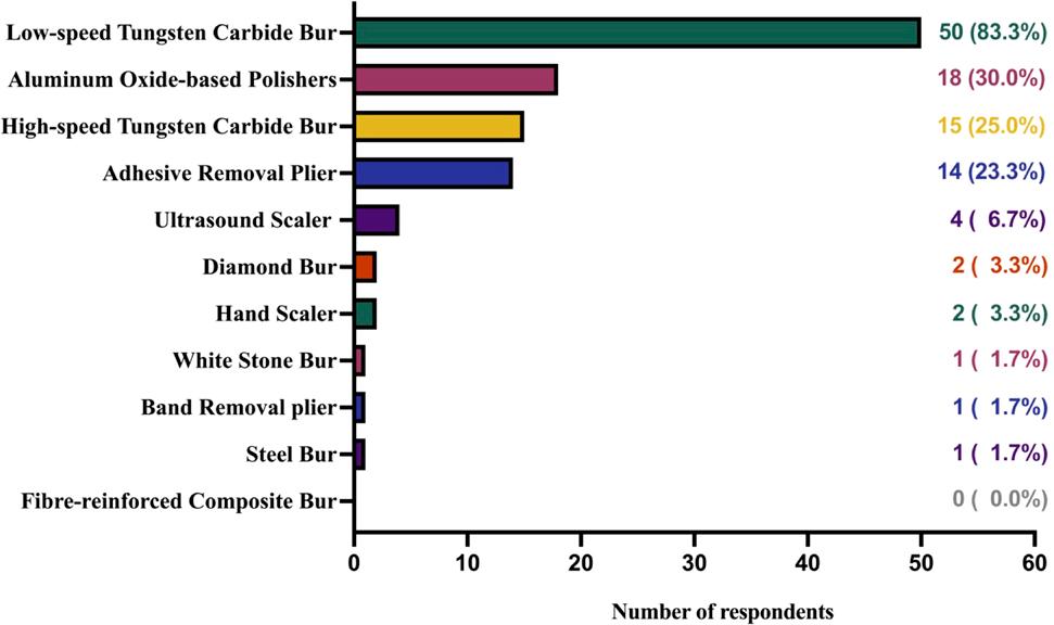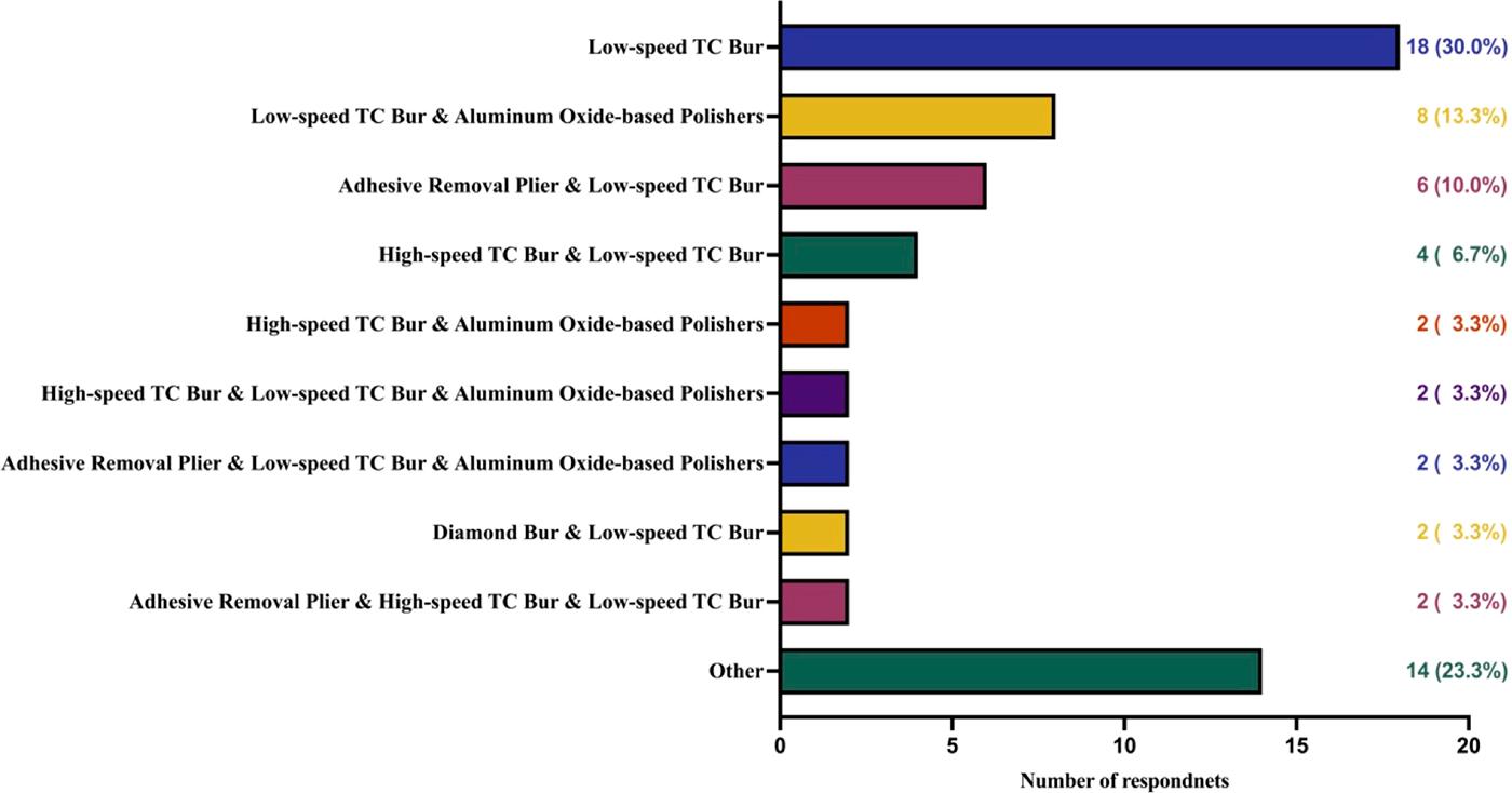 Different combinations of adhesive removal tools used by orthodontists [Data presents as number (%)].