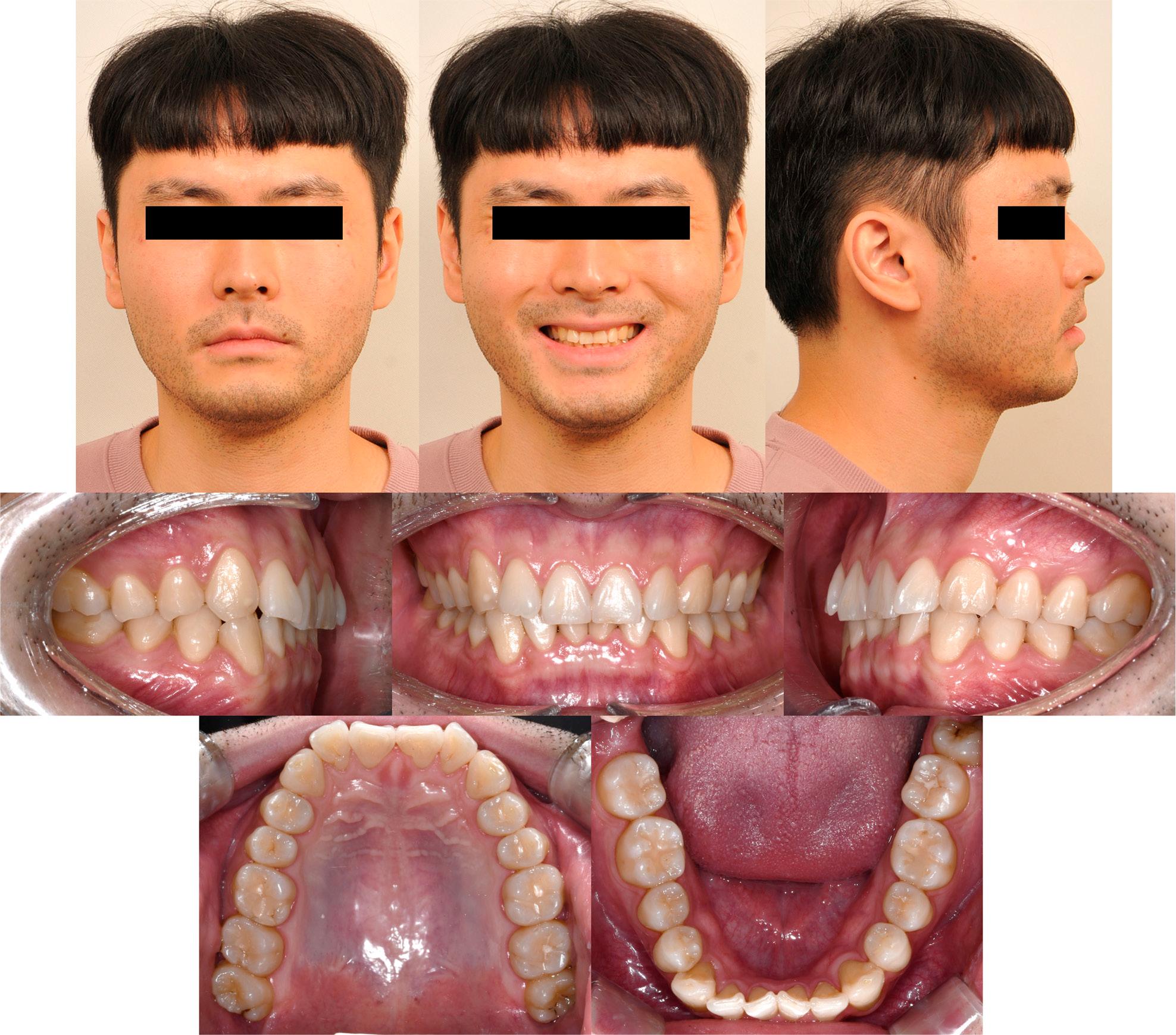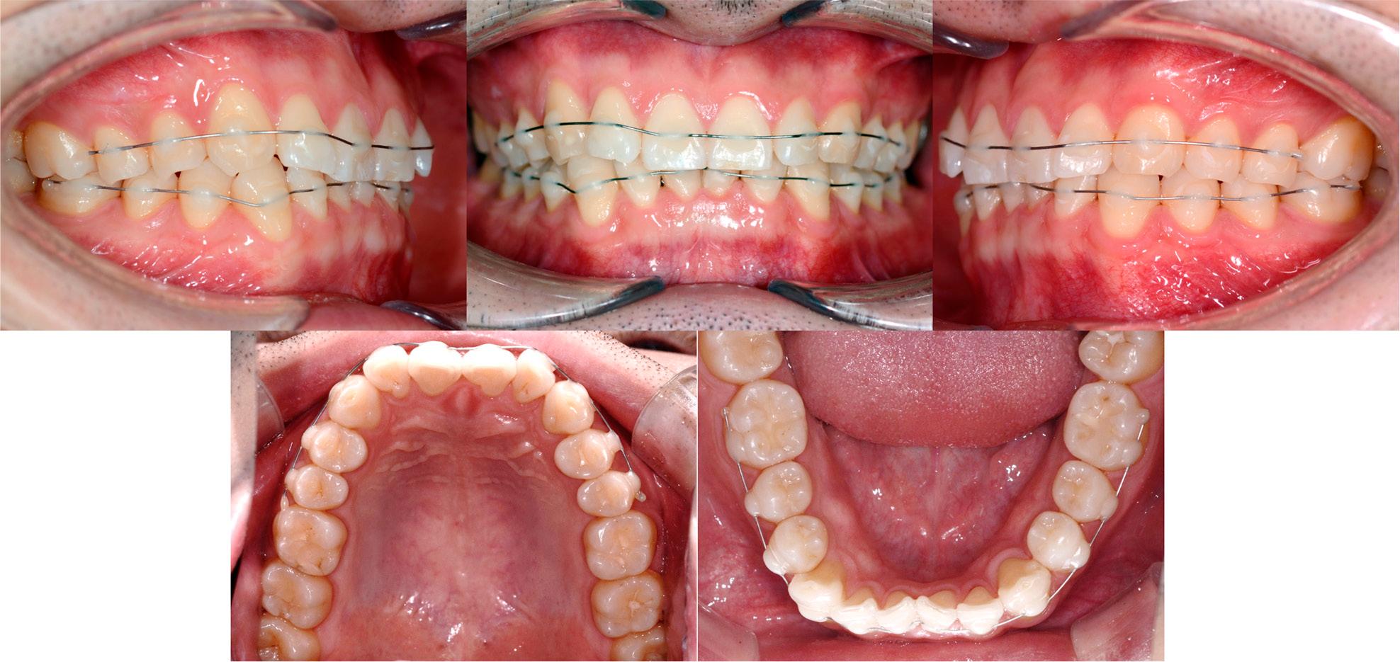 After 18 months, treatment was completed. A lingual fixed retainer was bonded between the mandibular canines. A removable circumferential retainer was also provided for the patient.