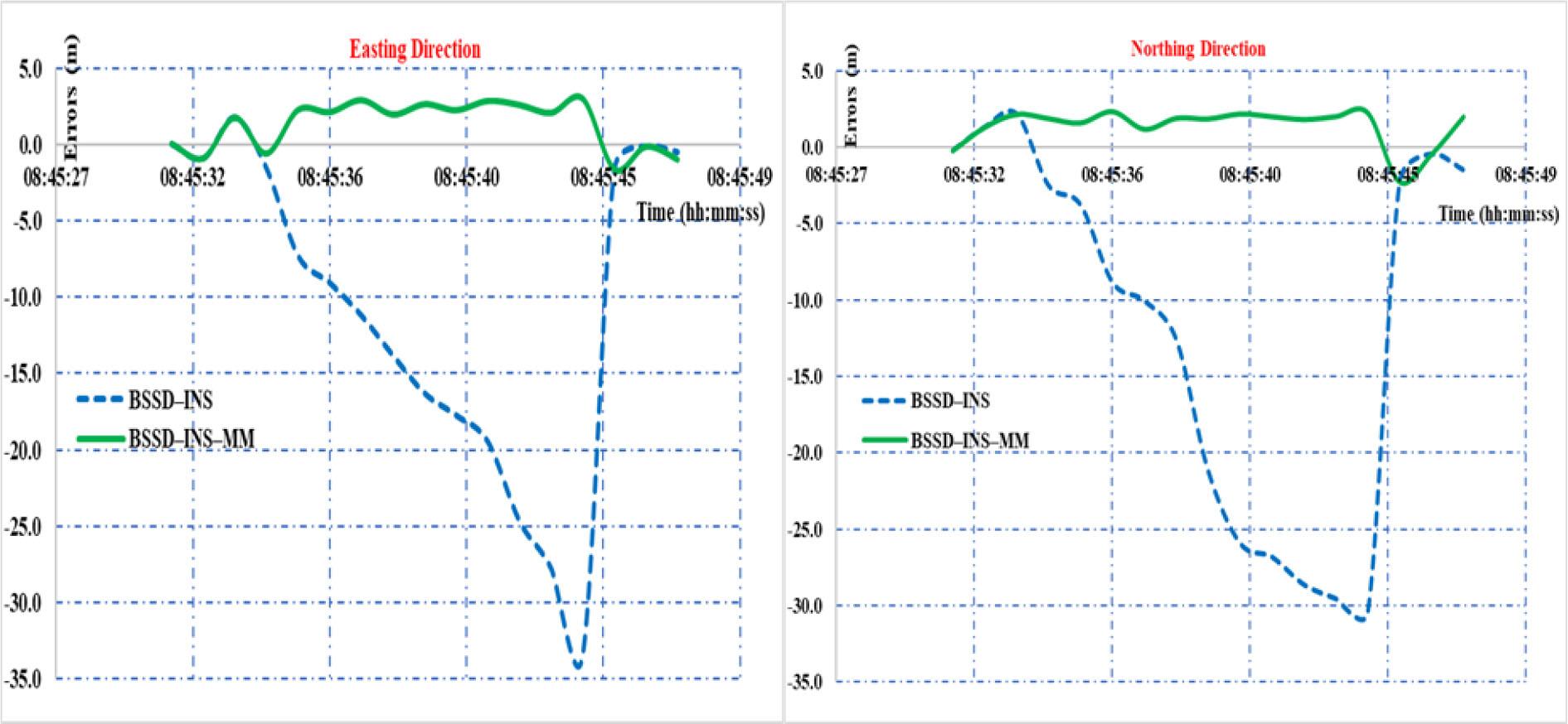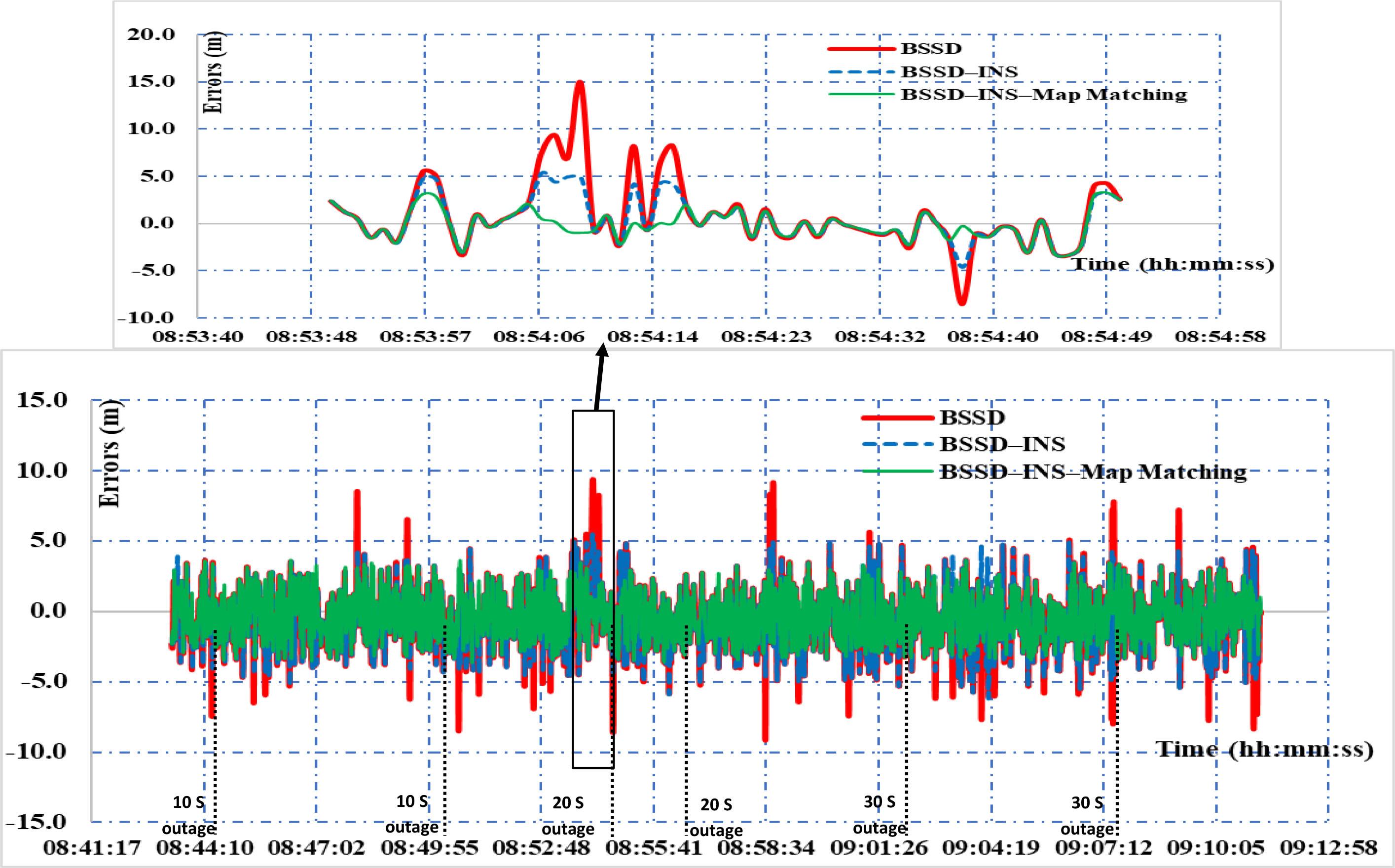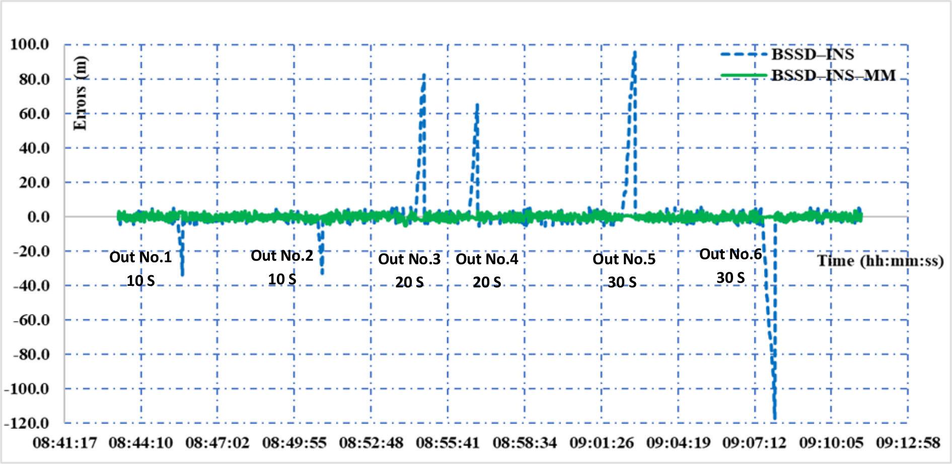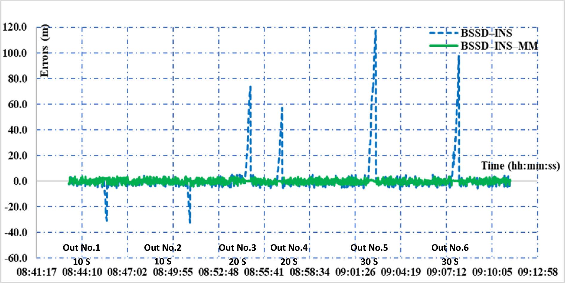 Maximum error for BSSD–INS and BSSD–INS–MM tracks at the inserted outages