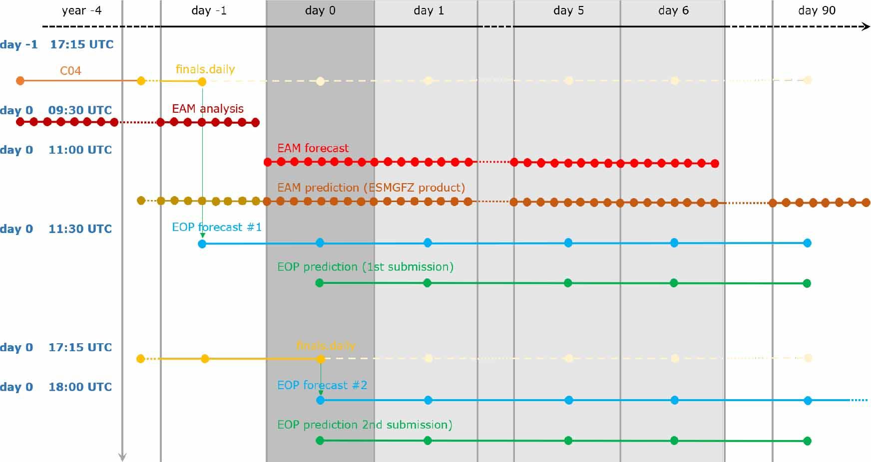 Two submissions to EOPPCC using the same EAMP product (brown) but different initial values from Bulletin A