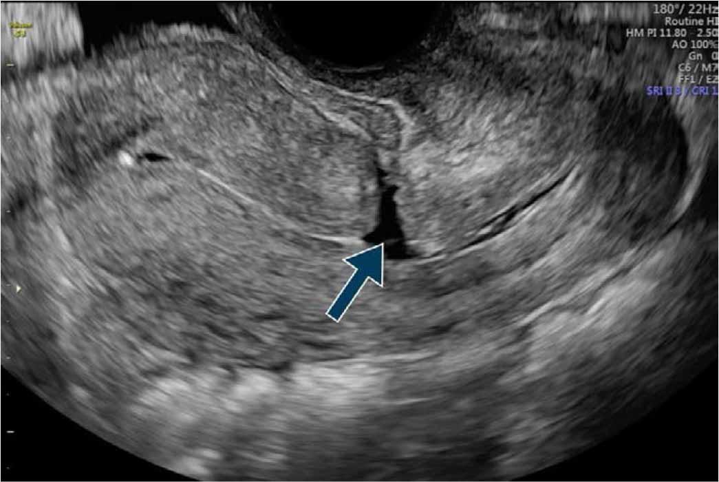 A uterine isthmocele in the sagittal plane by TVUS [27].