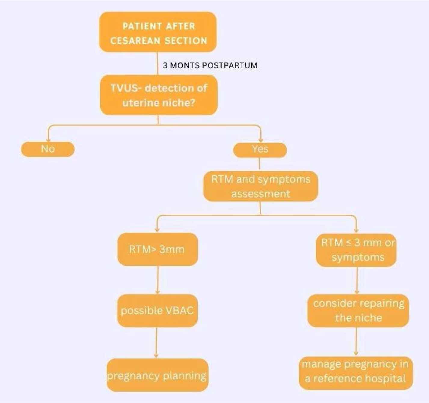 Proposed clinicalmanagement of a patient planning a pregnancy with a vaginal delivery after a post-cesarean uterine niche [69].