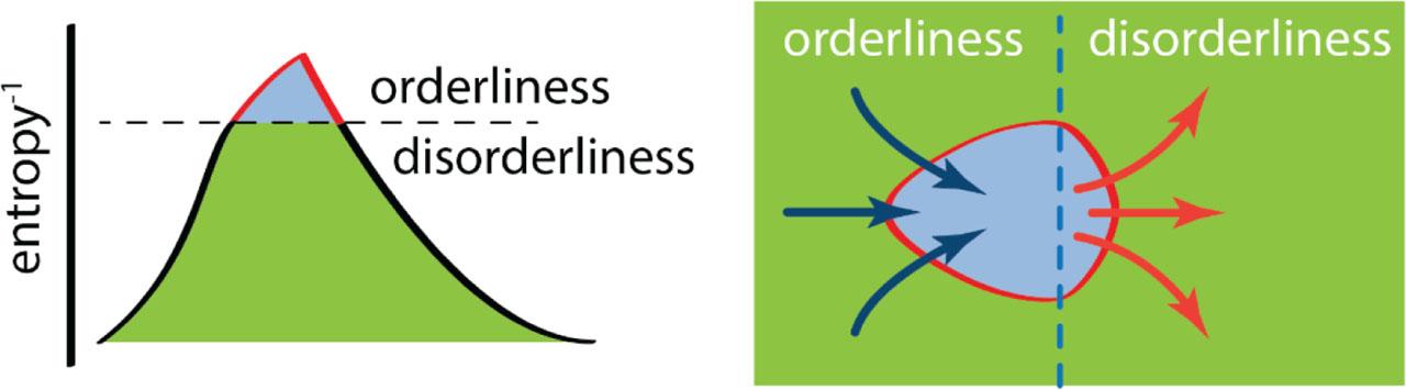 The thermodynamics illustrated in Figures 3 and 5 can apply both to living systems and physical systems. The formation of orderly arrays of Bénard cells in layers of heated fluids is but one example of the spontaneous emergence of orderliness in open thermodynamic systems, so called dissipative thermodynamic systems (11, 12).