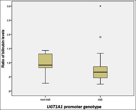 Levels of unconjugated bilirubin in pediatric Gilbert syndrome patients_