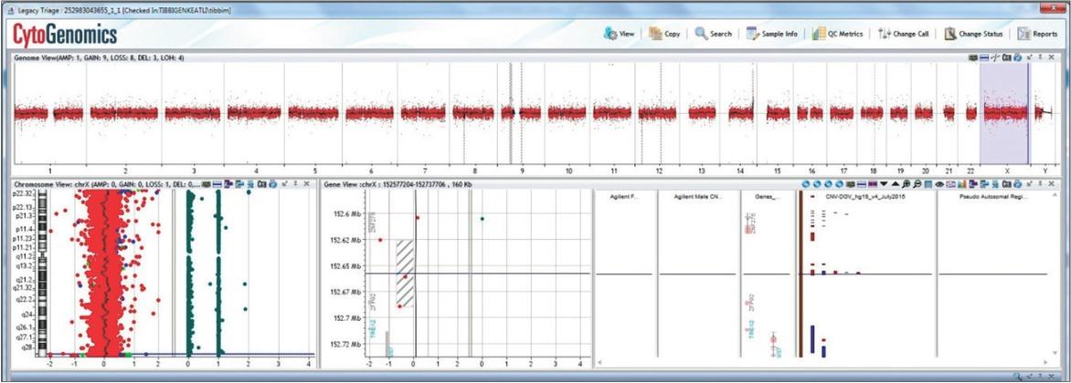 Array comparative genomic hybridization of the chorionic villus sample image is normal (180k array; Agilent Technologies).