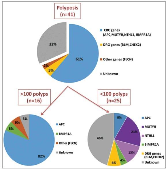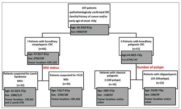 We have previously reported our initial data on the molecular characterization of FAP and HNPCC in our population [6,7]. We now present updated results of the study, which was performed on a larger cohort of patients with a clinical diagnosis of hereditary CRCs using an extended panel of genes related to cancer predispositions.