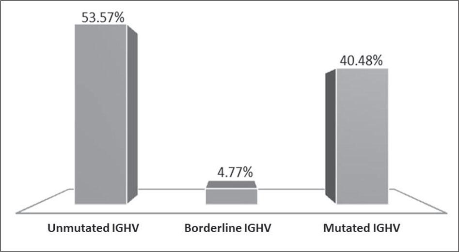 57 patients – unmutated IGHV; 44 patients – mutated IGHV; 4 patients – Borderline IGHV