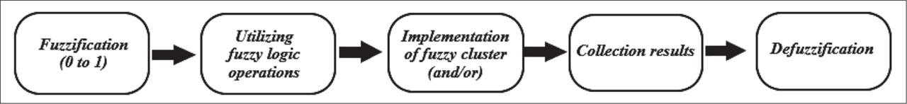 The MFIM model's five primary steps are shown in Figure 2. To identify the input variable membership degrees between 0 and 1, an initial fuzzification step was created. Utilizing fuzzy logic operations that are dependent on values is the second phase. The third step, termed “fuzzy cluster implementation,” was created to change “or” and “and.” In the fourth stage, the results are collected and represented as output. The final data is assembled in the penultimate step [12].