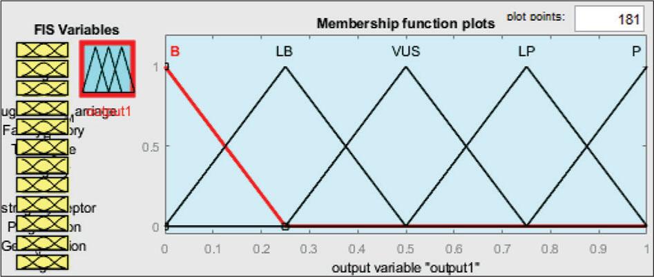 In the rule section, the dataset comprising information from 90 patients was utilized for training the system, incorporating risk factors within the rule section as depicted in Figure 6. The results were evaluated and accessible during the test phase, as stated in the classification in the output of the last section. The membership functions and values of the output are shown in Table 3.