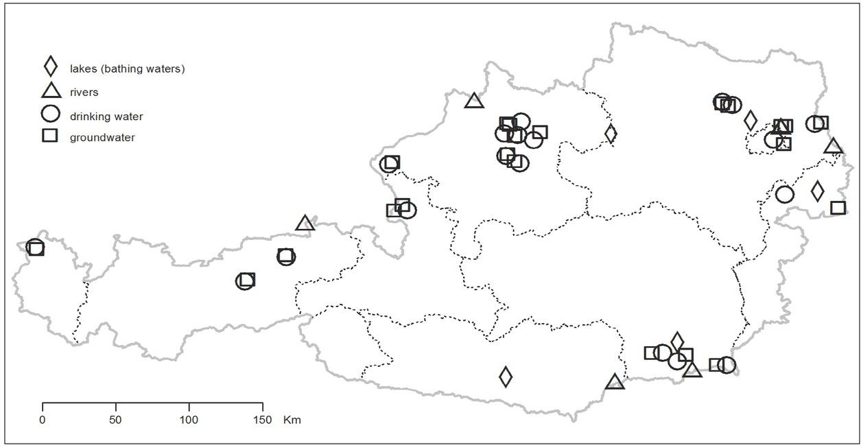 | Source | Parameter | Number of samples/sources above LOQ/total number | Range/values | PV/GV/DWEL drinking water | Reference |