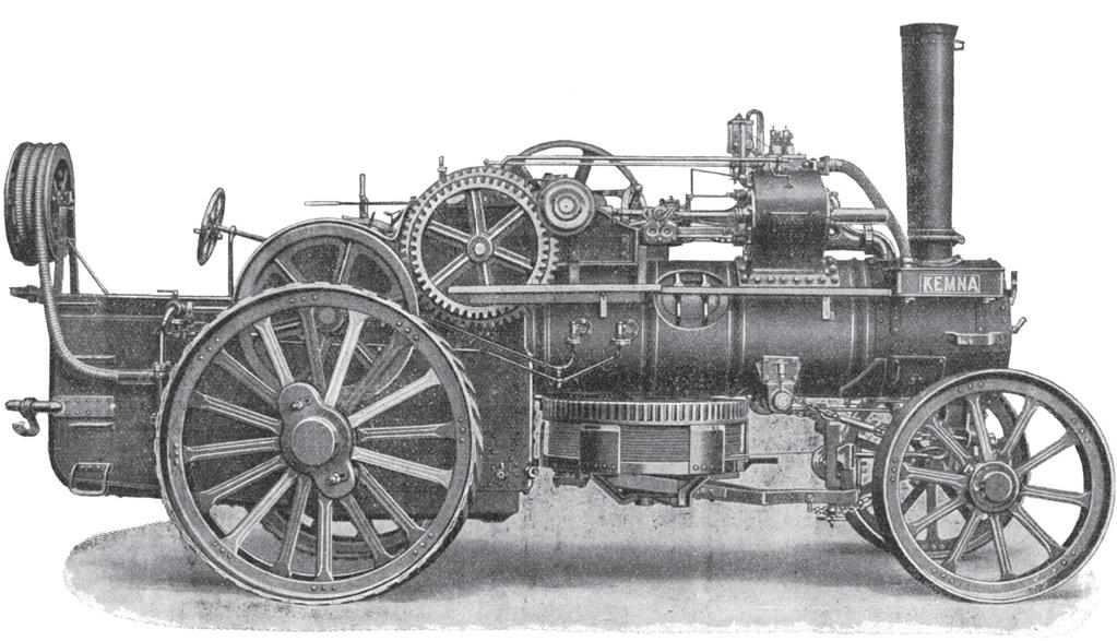 Abbildung 2. Selbstfahrenden Lokomobile Kemna (Deutschland) mit einer unter dem Dampfkessel montierten Seilwinde (Černý, 1926)