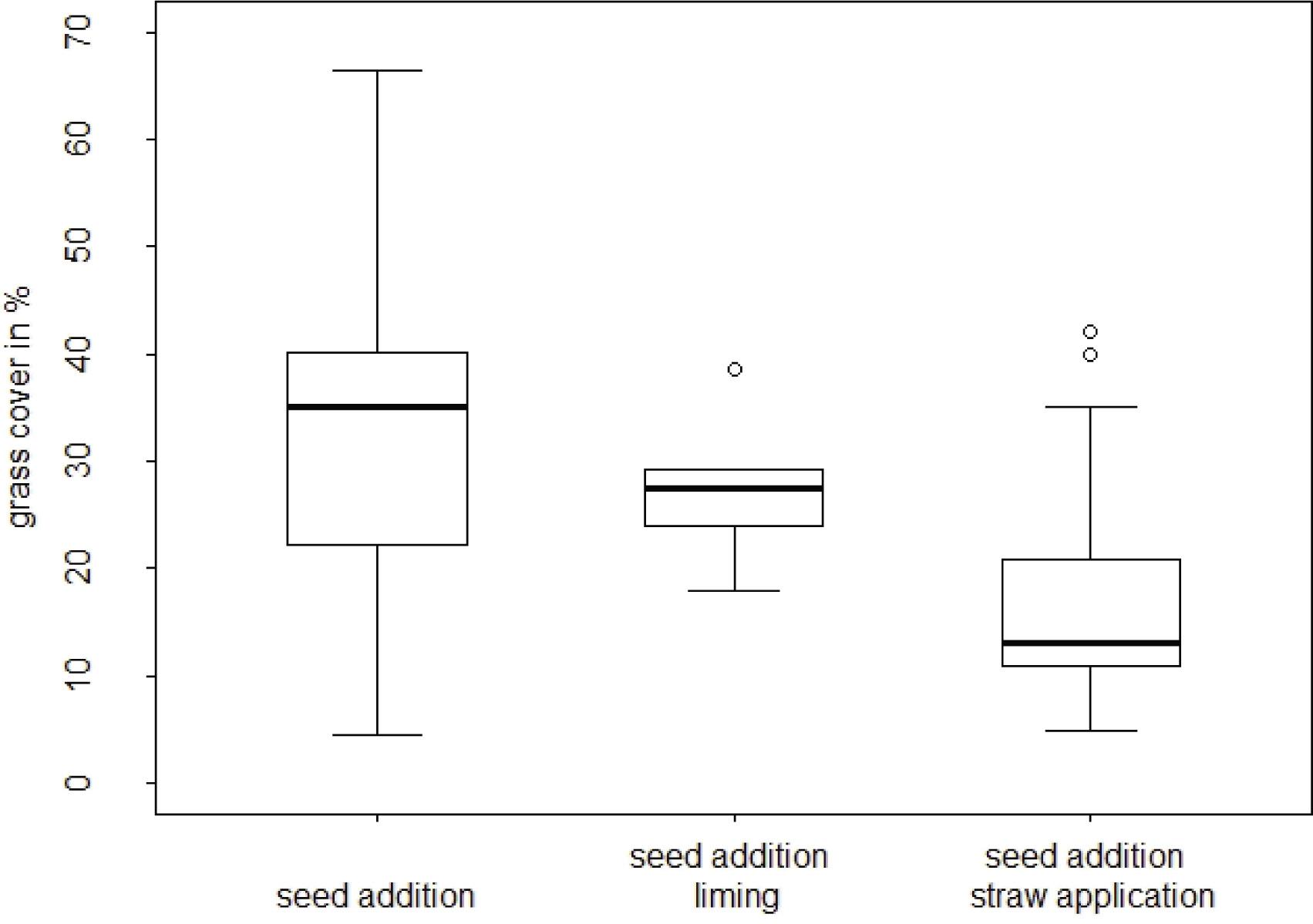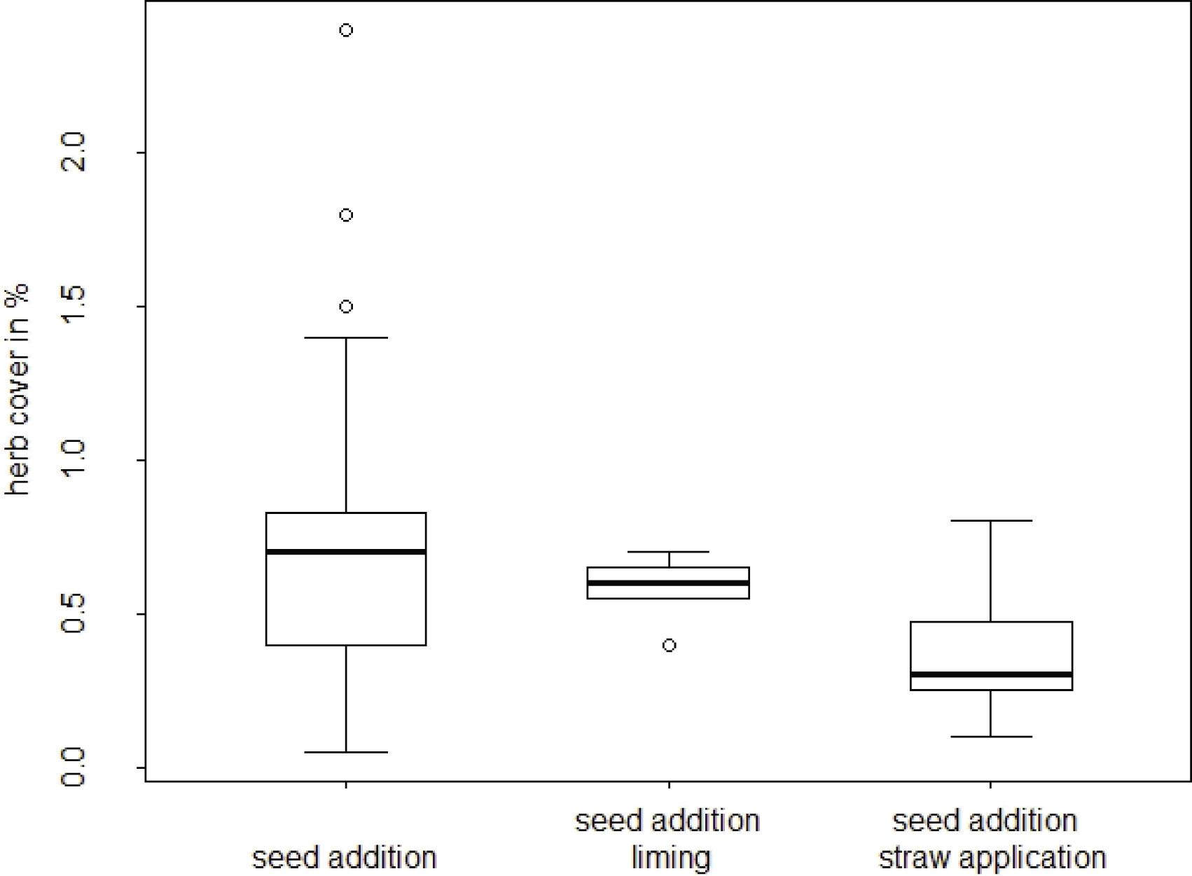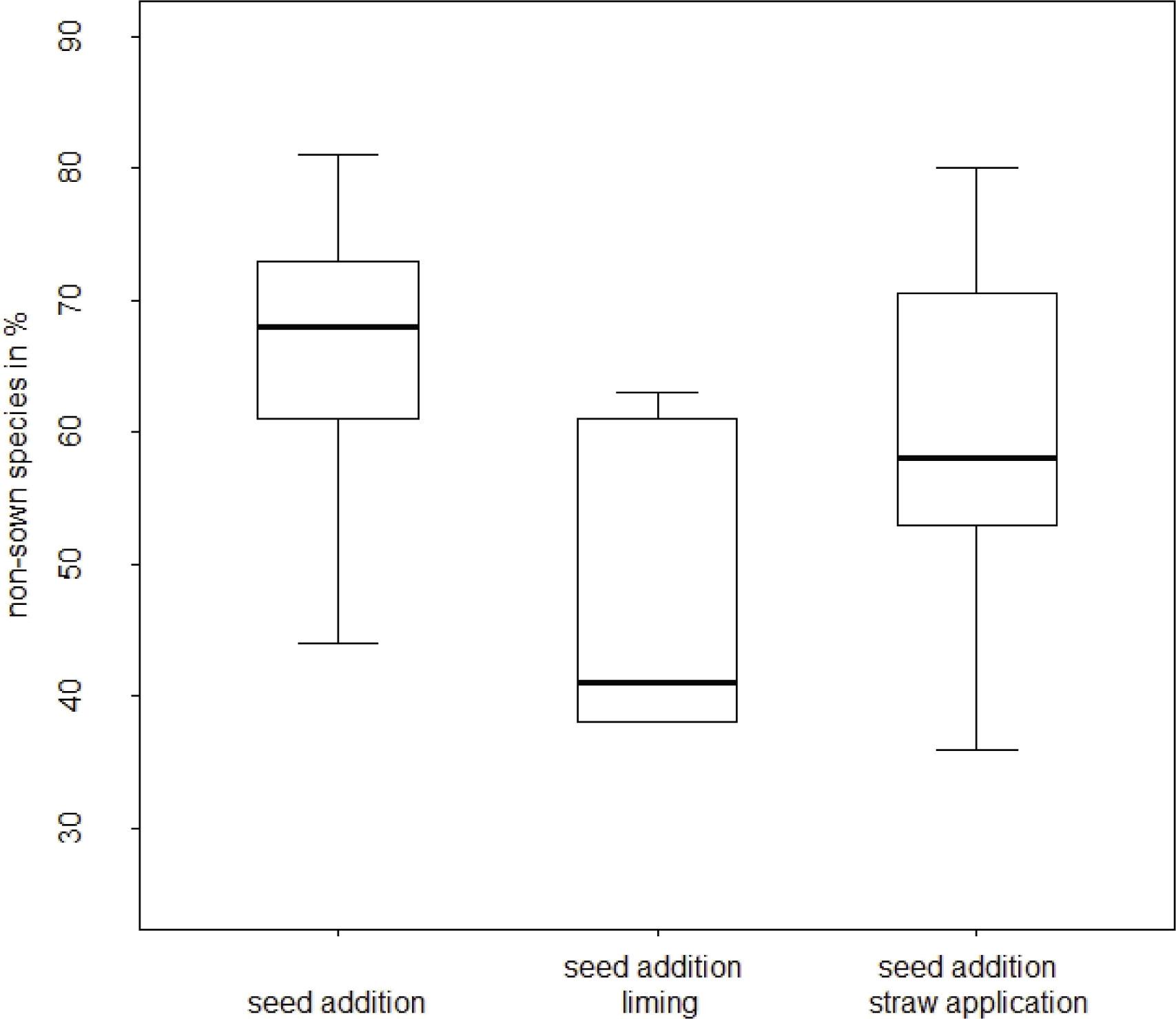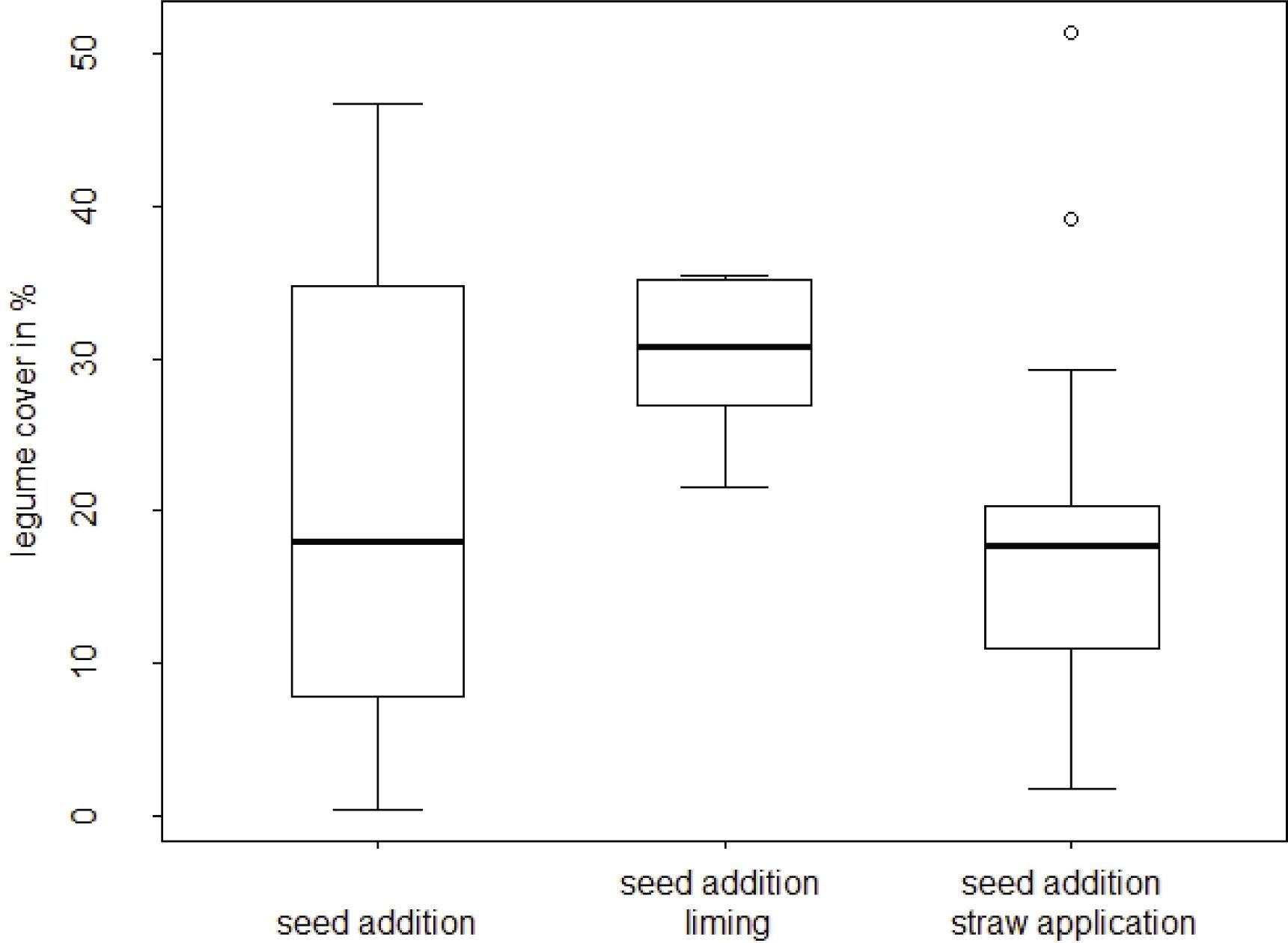 | seed addition (n = 27) | seed addition and liming (n = 5) | seed addition and straw application (n = 19) | seed addition and manure application (n = 1) | |||||||||