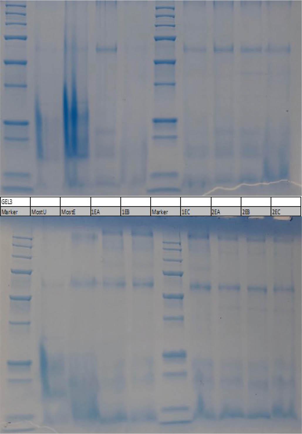 FTIR-Rohdaten Messung erfolgte am Abschluss der Gärung1_ Hefe + Nährstoffe + Vitamin B, 2_ Hefe + Nährstoffe + Vitamine B + Lallzyme C-MAX™ + Lallzyme P1 + Lallzmye P2, 3_ Hefe + Nährstoffe + Vitamine B + Lallzyme P2, 4_ Hefe + Nährstoffe+ Vitamine B + Lallzyme C-MAX™ + Lallzyme P1, U = unerhitzt, E = erhitzt, A, B, C = Wiederholung, T = TankTable 1_ FTIR Raw data measurement confirmed at the end of fermentation1_ Yeast + Nutrients + Vitamin B, 2_ Yeast + Nutrients + Vitamins B + Lallzyme C-MAX™ + Lallzyme P1 + Lallzmye P2, 3_ east + Nutrients + Vitamins B + Lallzyme P2, 4_ Yeast + Nutrients + Vitamins B + Lallzyme C-MAX™ + Lallzyme P1, U = unheated, E = heated, A, B, C = repeat, T = tank