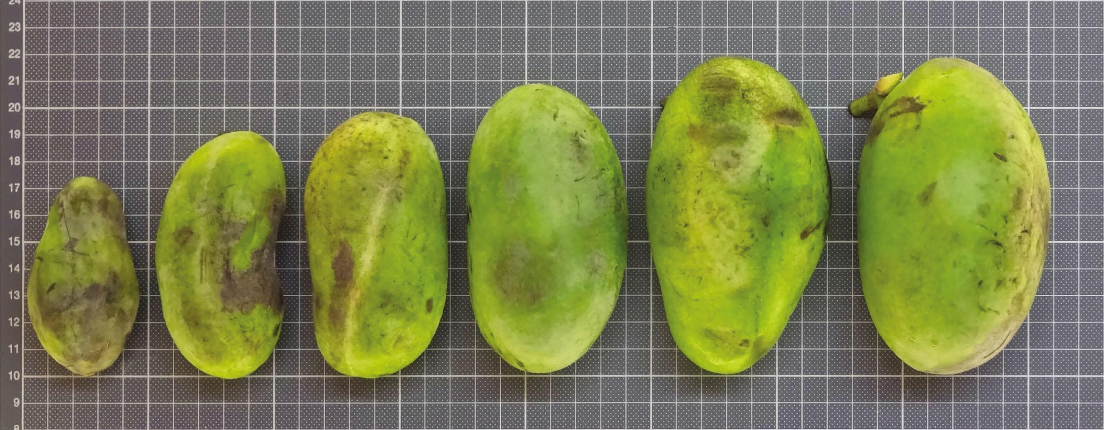 | Jahr | Erträge1 | Fruchtzahl1 | Gewichtsverteilung (g)2 | Fruchtgewicht1 | schwerste Frucht1 | Reifeverteilung | Saisonstart1 | Saisonlänge1 | Erntemaximum1 | Vegetationsperiode3 | |||||||||||||||||||||||||