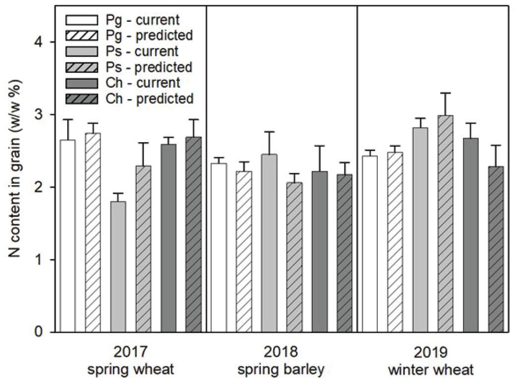 | Winter wheat | g m−2 | 18.6/Pg | <0.001 | 16.3/curr | 0.002 |