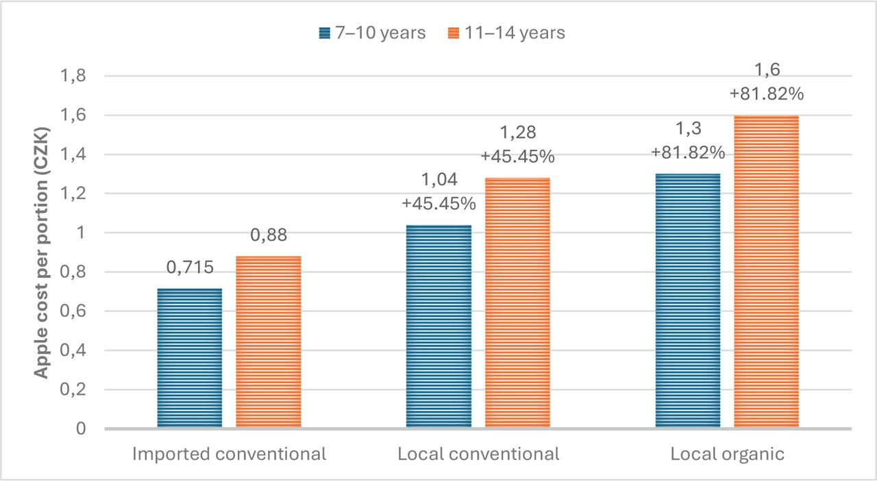 Cost impact of replacing imported conventional apples with local apples in Czech school meals